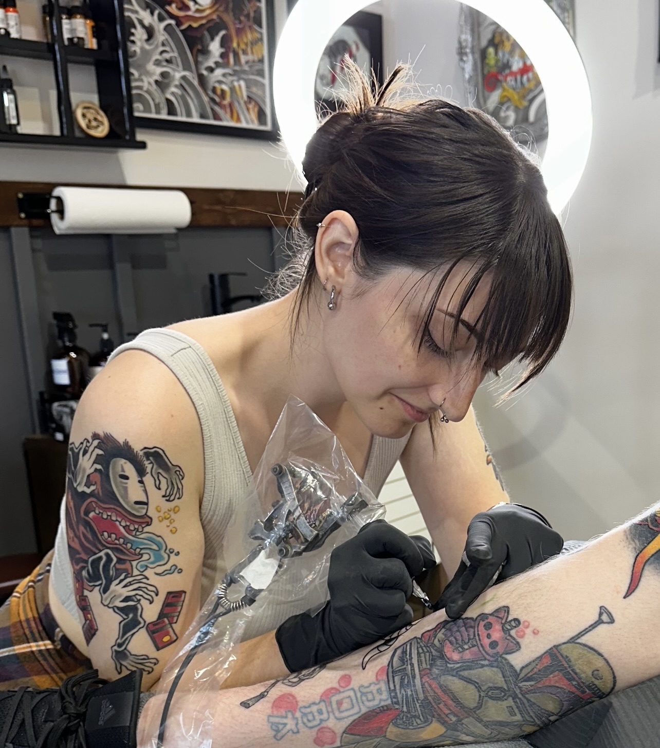 Gabbie (Gremi) enjoys tattooing any subject in colorful or black and grey American traditional style. She has a soft spot for silly cartoon characters and medieval inspired subject matter. Gabbie is also fond of doing stipple work and is always down to do fineline tattoos. She works by both appointment and walk-in.